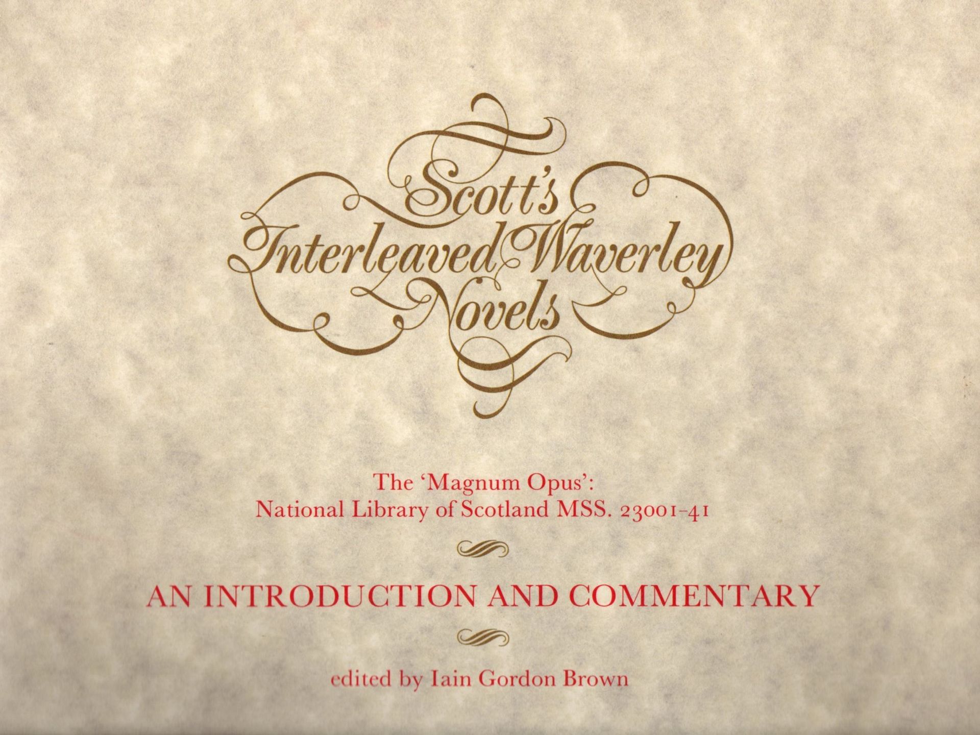 In 1987, Iain Gordon Brown edited Scott’s Interleaved Waverley Novels: An Introduction and Commentary (Aberdeen and Oxford: Aberdeen University Press and Pergamon Press). This substantial volume brought together major essays by Professor Jane Millgate, Dr Claire Lamont and Dr J. H. Alexander, alongside Brown’s own extended study and three further major sections.