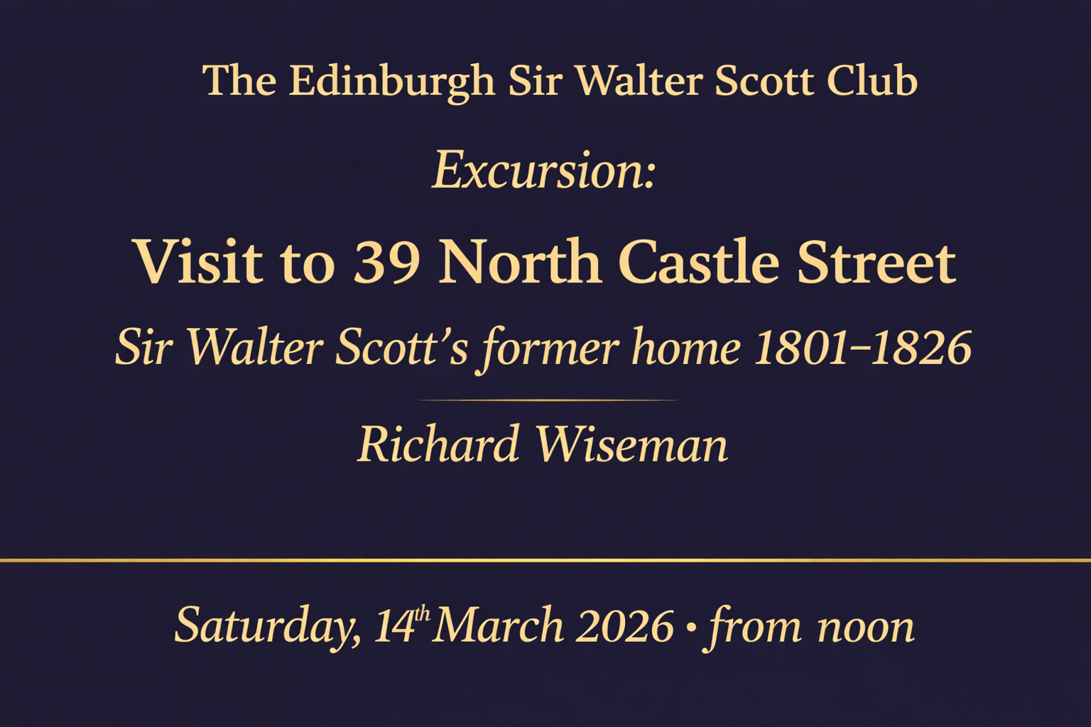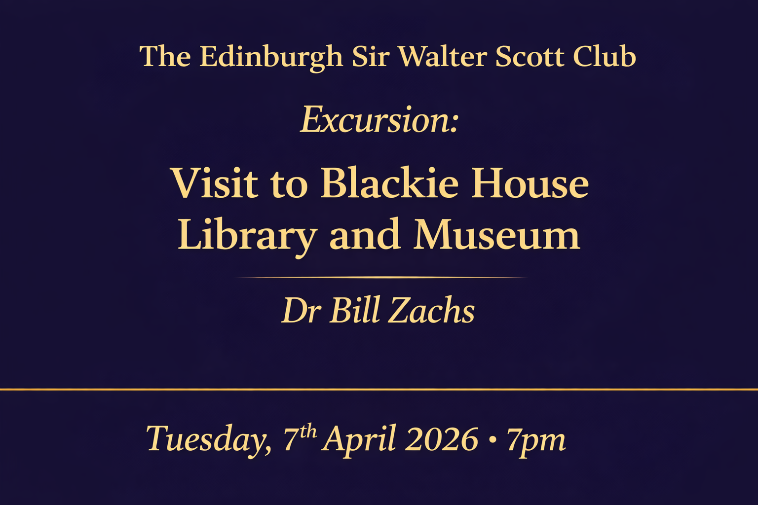 Club Lectures are open to Edinburgh Sir Walter Scott Club members and non-members, with the option of staying on for a reception, with or without wine. Edinburgh Sir Walter Scott Club membership is £15 (£18 joint) per calendar year [Join]