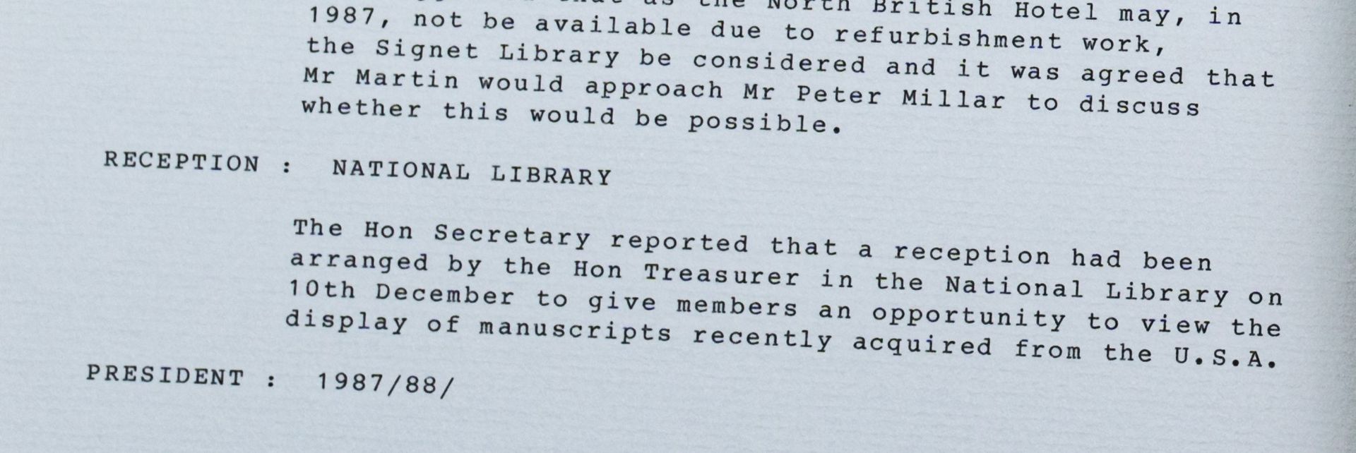 On 10th December 1986, members of the Edinburgh Sir Walter Scott Club were given a rare privilege: a private viewing of two of the most significant Scott acquisitions of the twentieth century — the Interleaved Set of the Waverley Novels, known as the ‘Magnum Opus’, and the Pforzheimer Scott manuscripts, newly returned from the United States. The viewing was conducted by Dr Iain Gordon Brown of the National Library of Scotland, who had been closely involved in securing their acquisition.