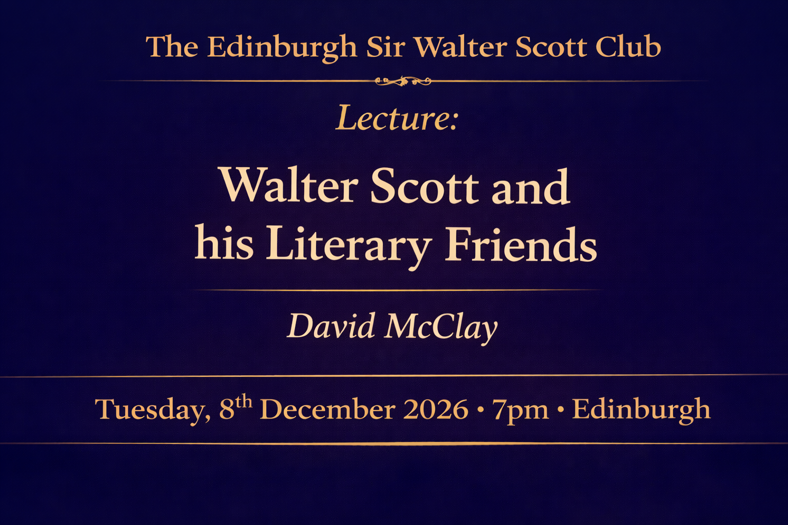 Lecture: Tuesday 8th December 2026, 7pm, Edinburgh: "Walter Scott and his Literary Friends" with David McClay.