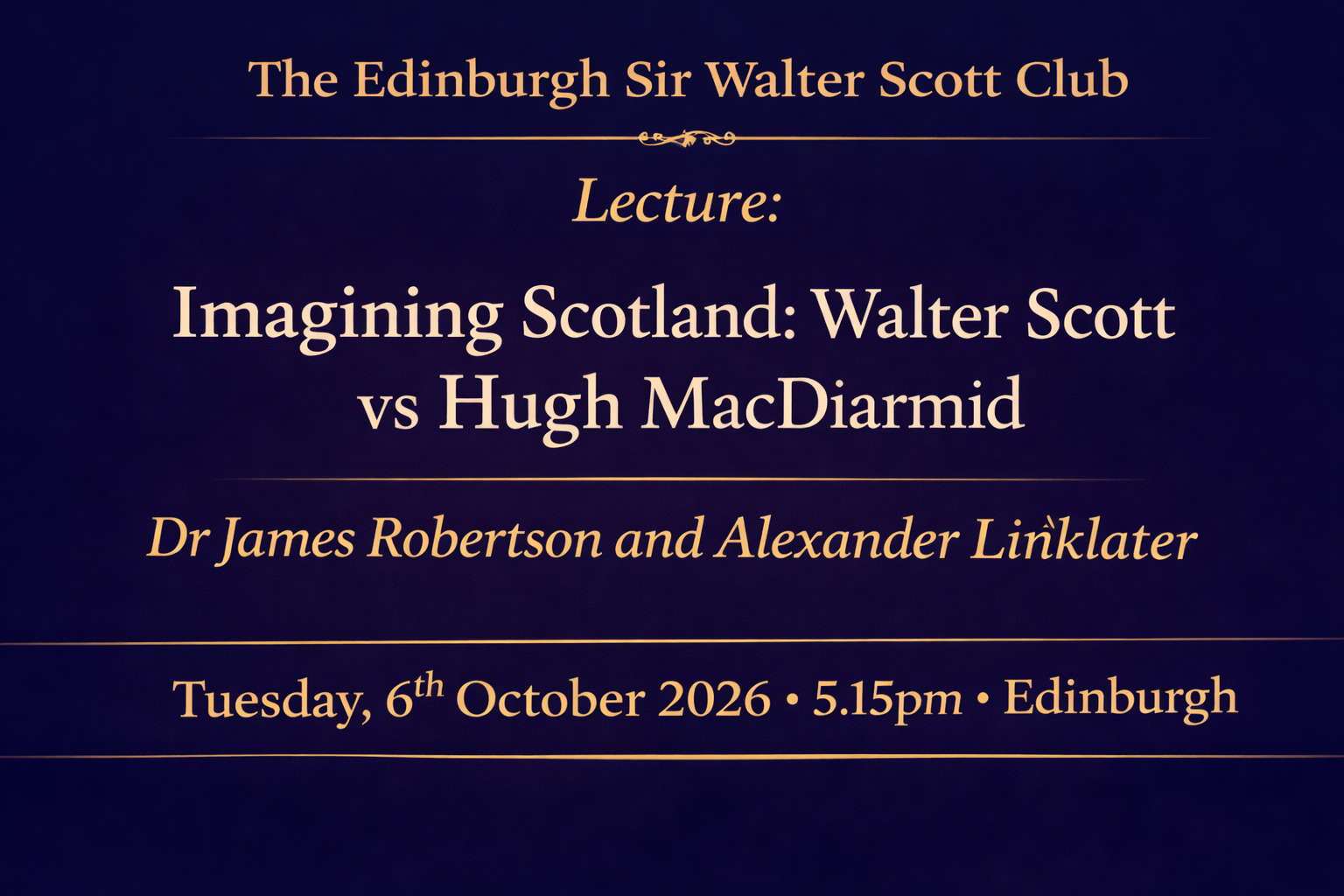 Lecture: Tuesday 6th October 2026, 5.15pm, Edinburgh: "Imagining Scotland: Walter Scott vs Hugh MacDiarmid" with Dr James Robertson and Alexander Linklater.