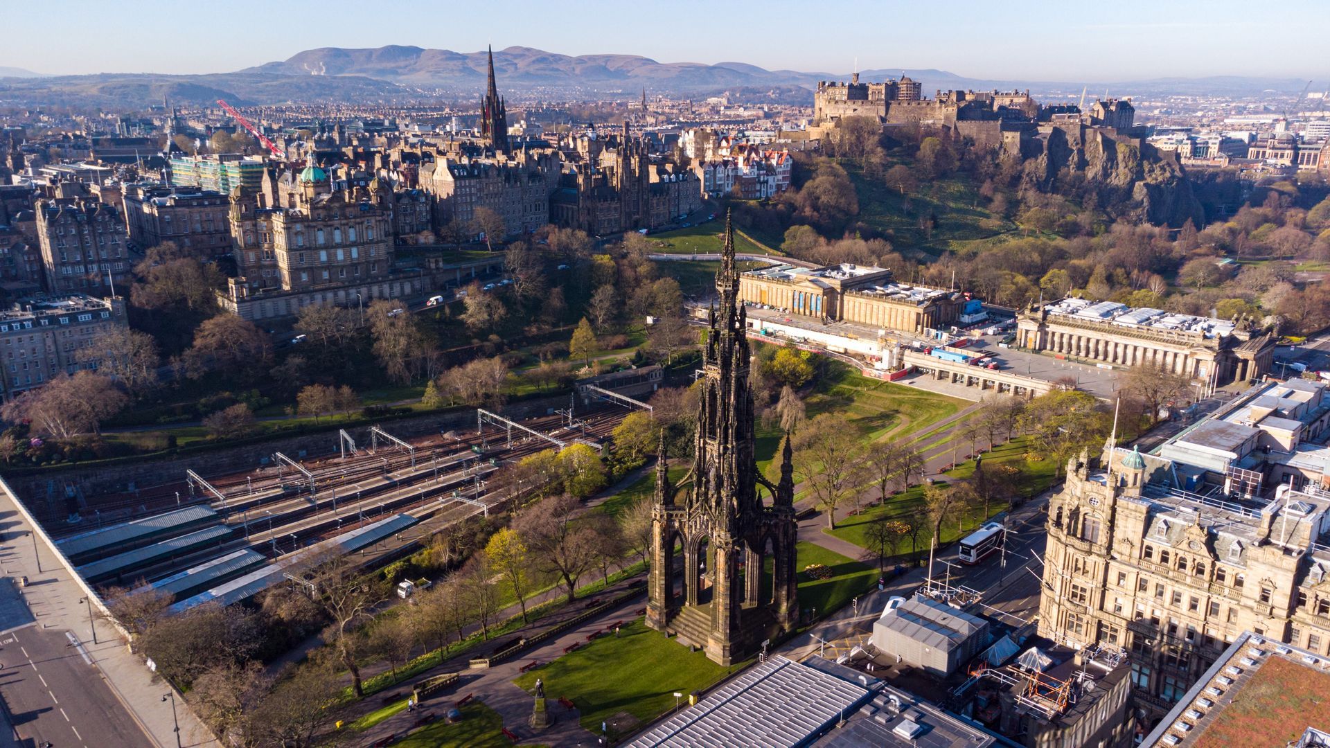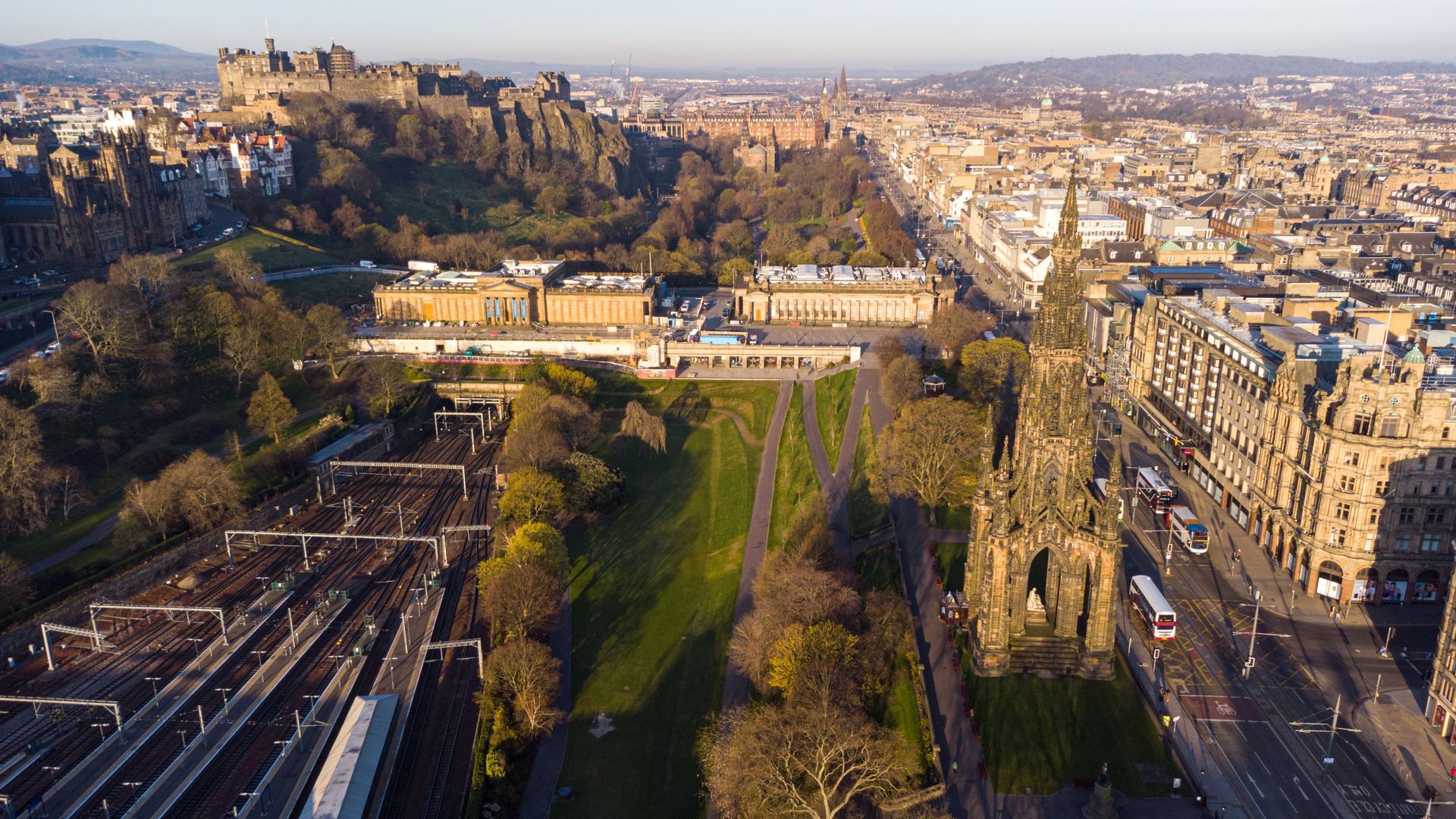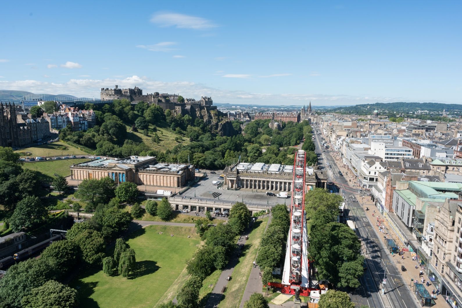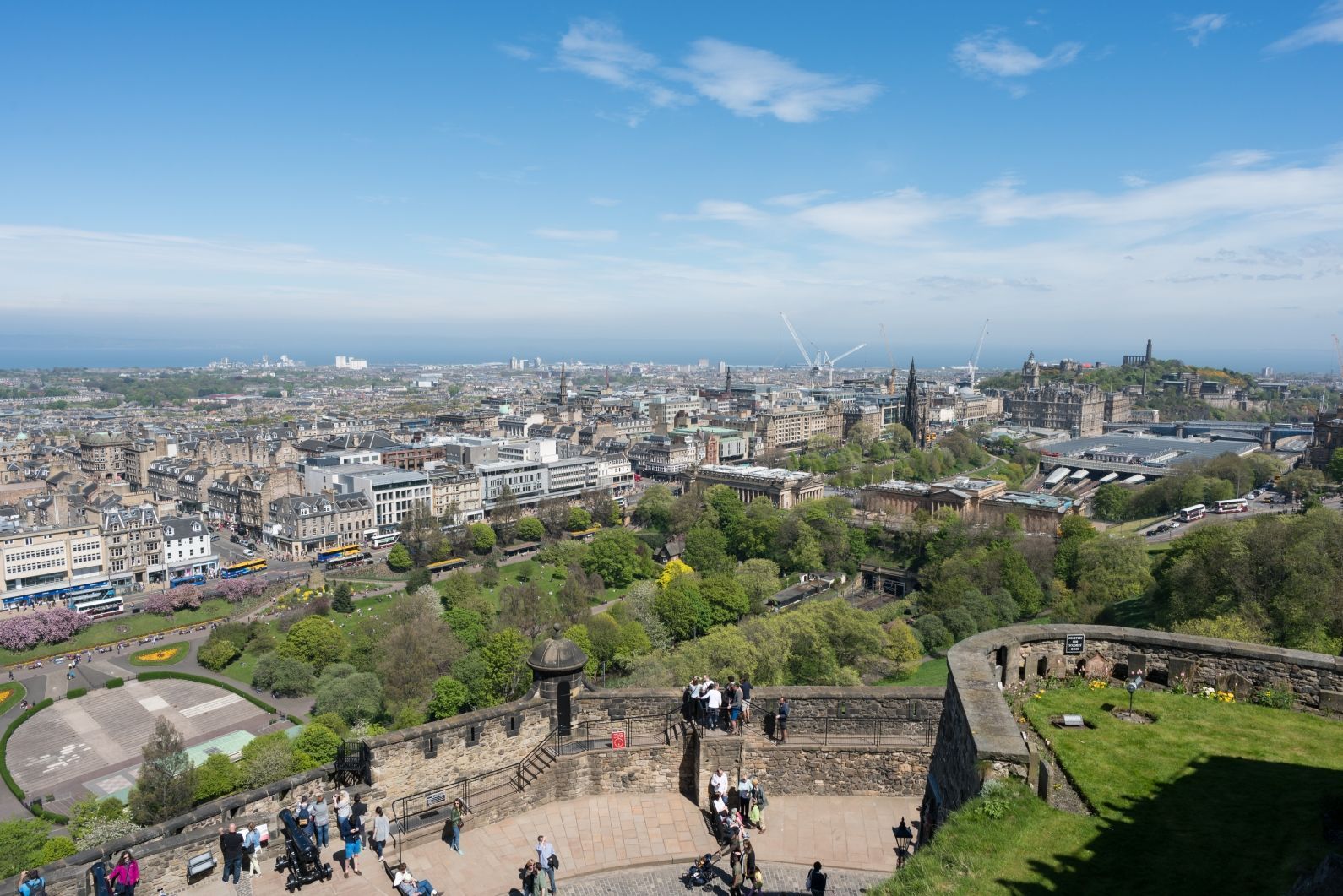 From the esplanade, look down toward the New Town. The medieval fortress commands the Georgian grid.