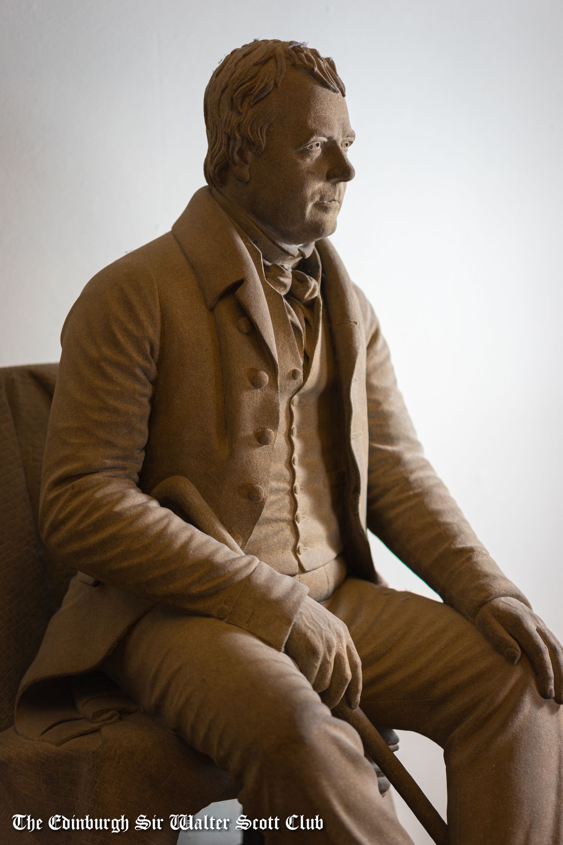 • The John Greenshields “Sic Sedebat” statue of Scott near the entrance to the Library — originally placed at Robert Cadell’s premises in St Andrew Square before being relocated to Parliament Hall.